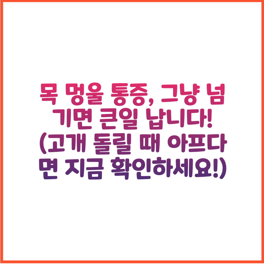 고개를 돌릴 때 나타나는 목의 통증이 단순한 근육 뭉침인지, 아니면 임파선 관련 문제인지를 판단하는 것은 쉬운 일이 아닙니다.