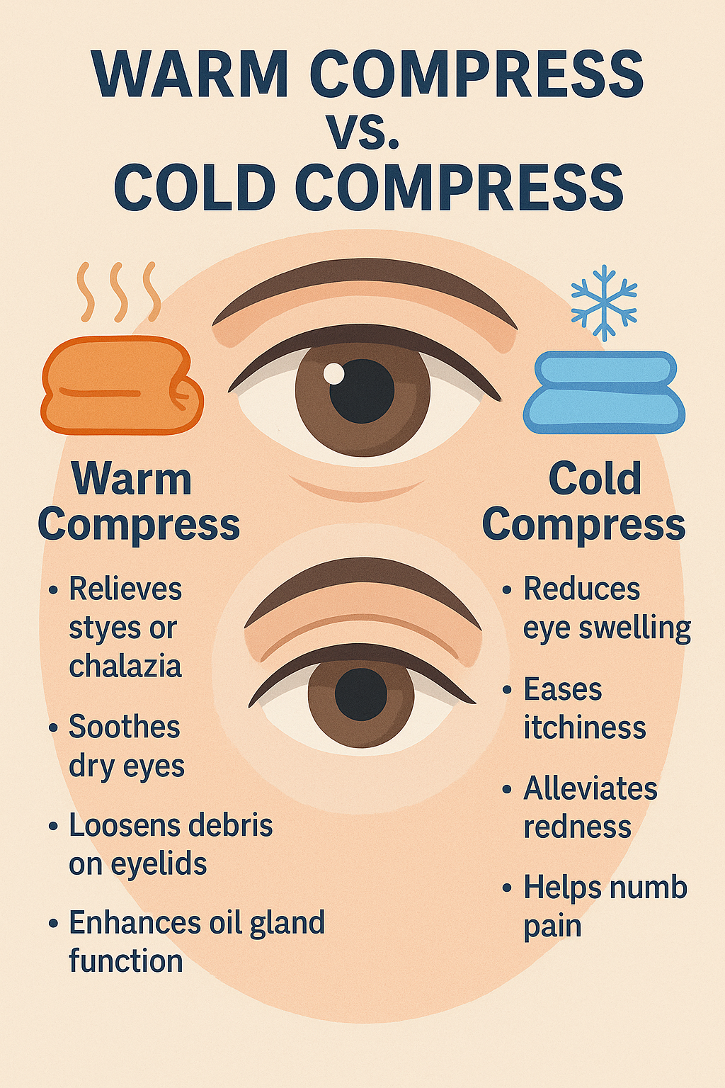 | 주의사항 | 너무 뜨거운 수건 사용 금지, 터진 상태에서는 피해야 함 | 과도한 냉기 노출 피하고, 눈에 직접 얼음 대지 않기 |