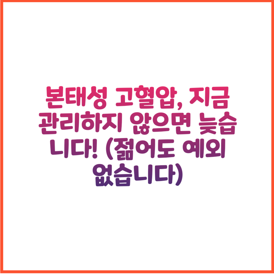 혹은 정기검진에서 '주의가 필요하다'는 말을 들은 적은 없으신가요? 고혈압, 특히 특별한 원인이 없는 ‘본태성 고혈압’은 조용히 찾아와 건강을 위협하는 무서운 질환입니다.