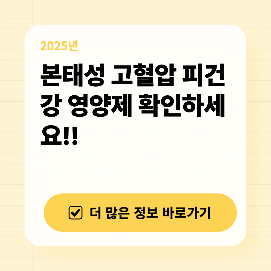 본태성 고혈압은 ‘습관병’입니다. 스스로 관리할 수 있는 정보만 잘 실천해도 충분히 조절할 수 있습니다. 이 글이 여러분의 혈압 관리에 실질적인 도움이 되길 바랍니다. 혈압이 조금이라도 높다고 판단된다면, 지금 바로 오늘의 생활 습관부터 점검해보시기 바랍니다. 지속적인 관심과 실천이 건강을 지키는 가장 확실한 방법입니다.