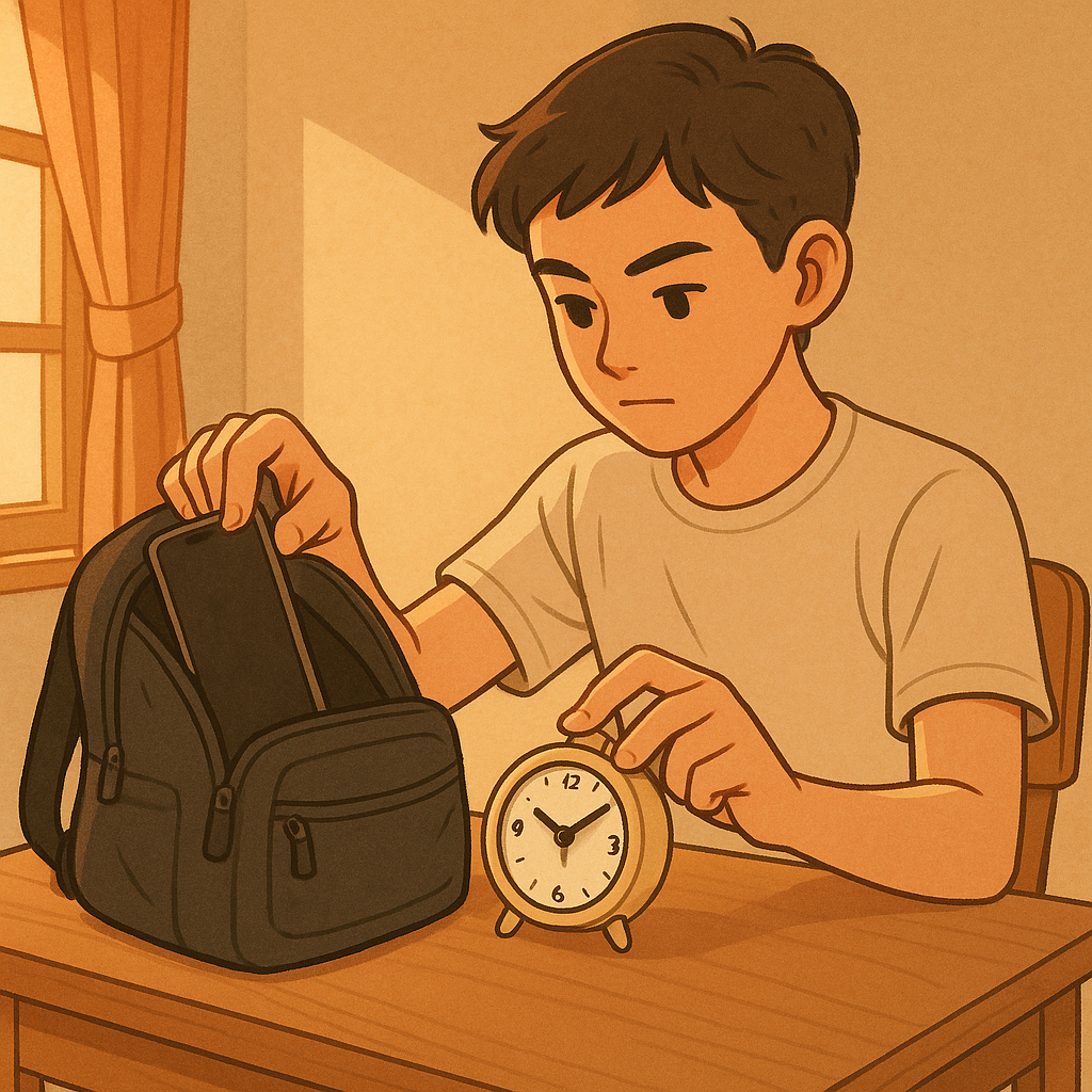 심리적으로 손이 닿는 곳에 스마트폰이 있다는 것만으로도 주의가 분산되기 쉽습니다. 가장 단순하지만 효과적인 방법은 스마트폰을 물리적으로 멀리 두는 것입니다. 공부 시간에는 스마트폰을 방 밖에 두거나, 가방에 넣어 잠궈두는 것도 좋은 방법입니다.