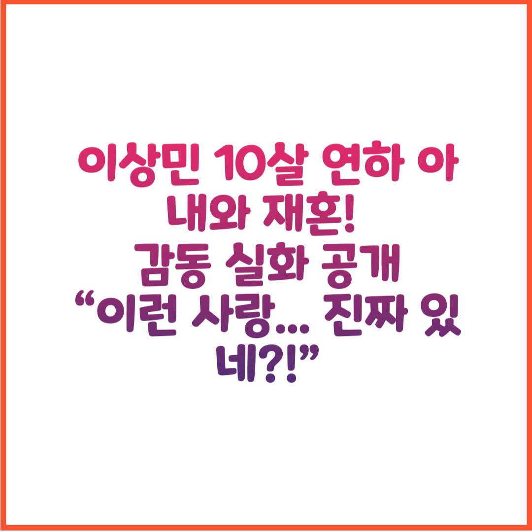 이상민의 재혼 스토리는 단순한 연예인의 결혼 뉴스가 아닙니다. 오랜 시간 혼자였던 그가 10살 연하의 아내와 만나 삶의 희망을 되찾고, 진정한 인연을 통해 마음의 안정을 얻는 과정은 많은 이들에게 따뜻한 울림을 전합니다. 특히 결혼식을 생략한 아내의 배려, 재치 있는 발언, 이상민의 달라진 생활 모습은 두 사람의 진정성 있는 사랑을 잘 보여주고 있습니다. 이번 글을 통해 독자 여러분도 ‘진짜 사랑’이란 무엇인지 다시 한번 느껴보셨기를 바라며, 이상민 부부의 앞날에 진심 어린 응원과 축복을 보냅니다.