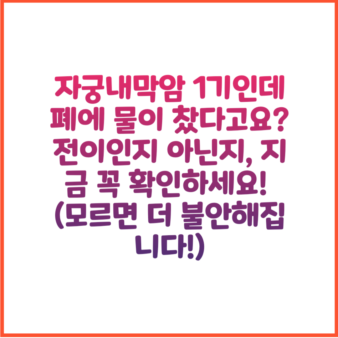 자궁내막암 1기 진단을 받고 치료를 잘 이어오던 중, 갑작스럽게 폐에 물이 찼다는 이야기를 들으면 누구나 마음이 무거워질 수밖에 없습니다. 특히 초기 암이라 생각했는데 폐 전이 가능성을 의심해야 하는 상황이라면, 더욱 불안하고 혼란스러울 수 있습니다. 이 글은 바로 그런 고민을 겪고 계신 분들을 위해 준비했습니다. 자궁내막암 1기에서 폐로 전이되는 가능성은 실제로 얼마나 되는지, 폐에 물이 차는 다른 원인들은 무엇인지, 그리고 지금 상황에서 어떤 조치가 필요한지를 의료적인 관점과 실질적인 조언을 바탕으로 상세히 안내드립니다. 막연한 불안감에서 벗어나기 위해, 꼭 필요한 정보를 이 글에서 확인해보세요.